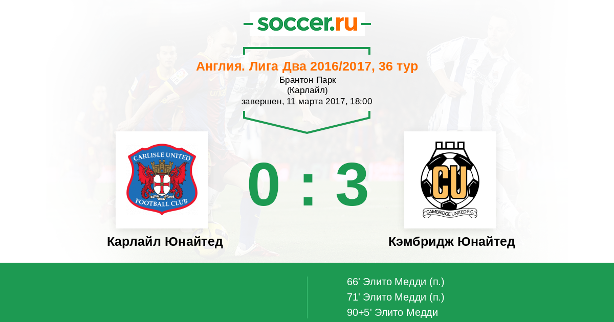 Протокол матча Карлайл Юнайтед против Кэмбридж Юнайтед