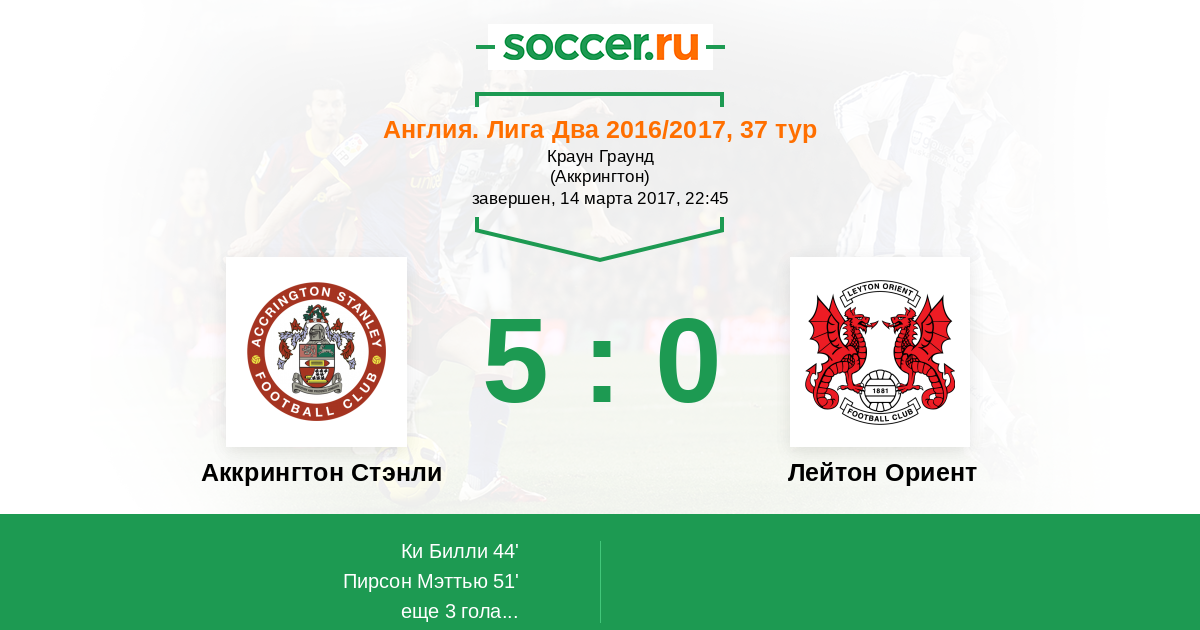 Протокол матча Аккрингтон Стэнли против Лейтон Ориент