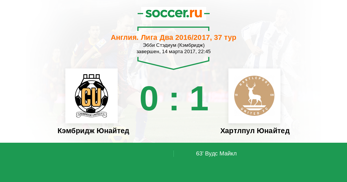 Протокол матча Кэмбридж Юнайтед против Хартлпул Юнайтед