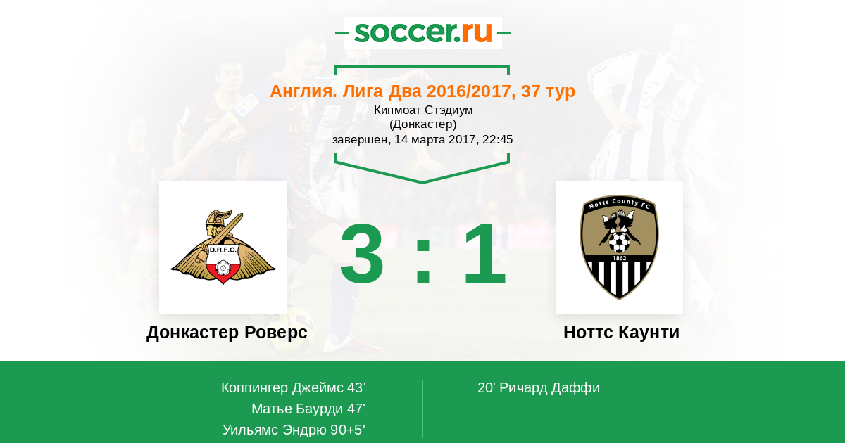 Протокол матча Донкастер Роверс против Ноттс Каунти