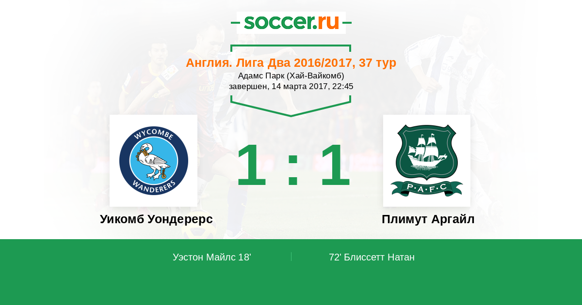 Протокол матча Уикомб Уондерерс против Плимут Аргайл