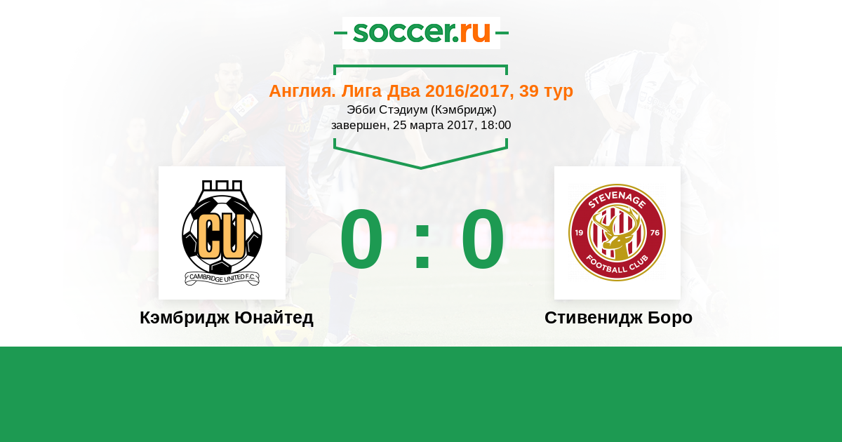 Протокол матча Кэмбридж Юнайтед против Стивенидж Боро