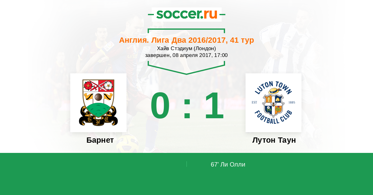 Протокол матча Барнет против Лутон Таун