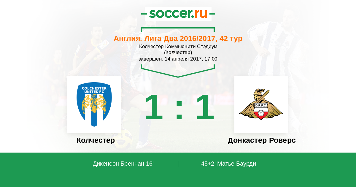 Протокол матча Колчестер против Донкастер Роверс