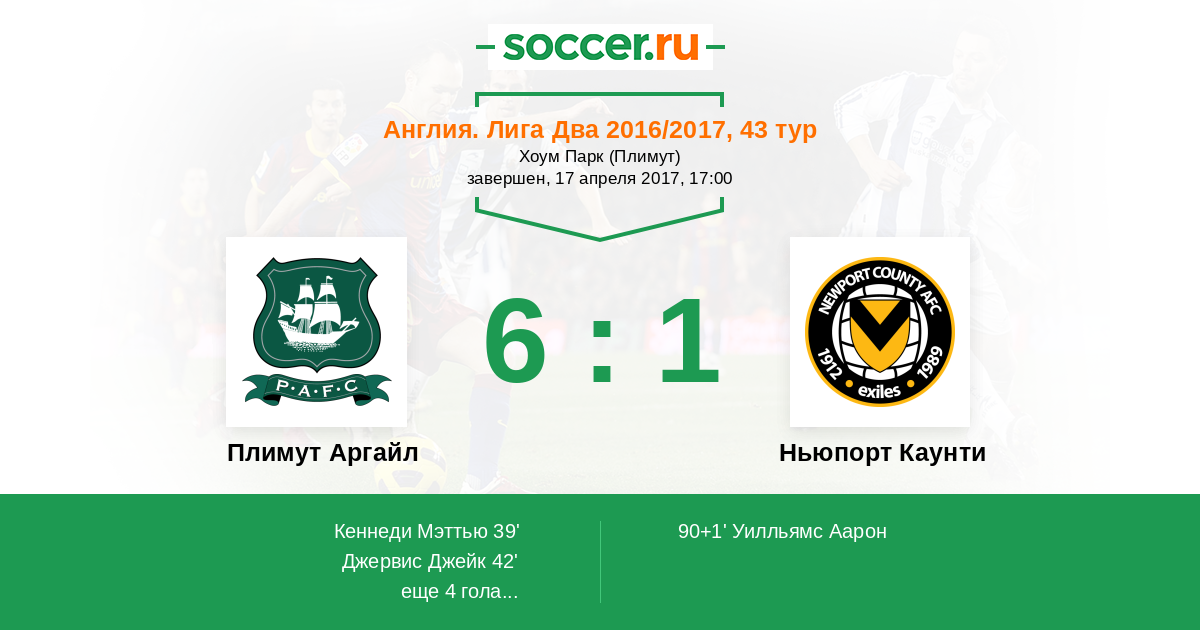 Протокол матча Плимут Аргайл против Ньюпорт Каунти