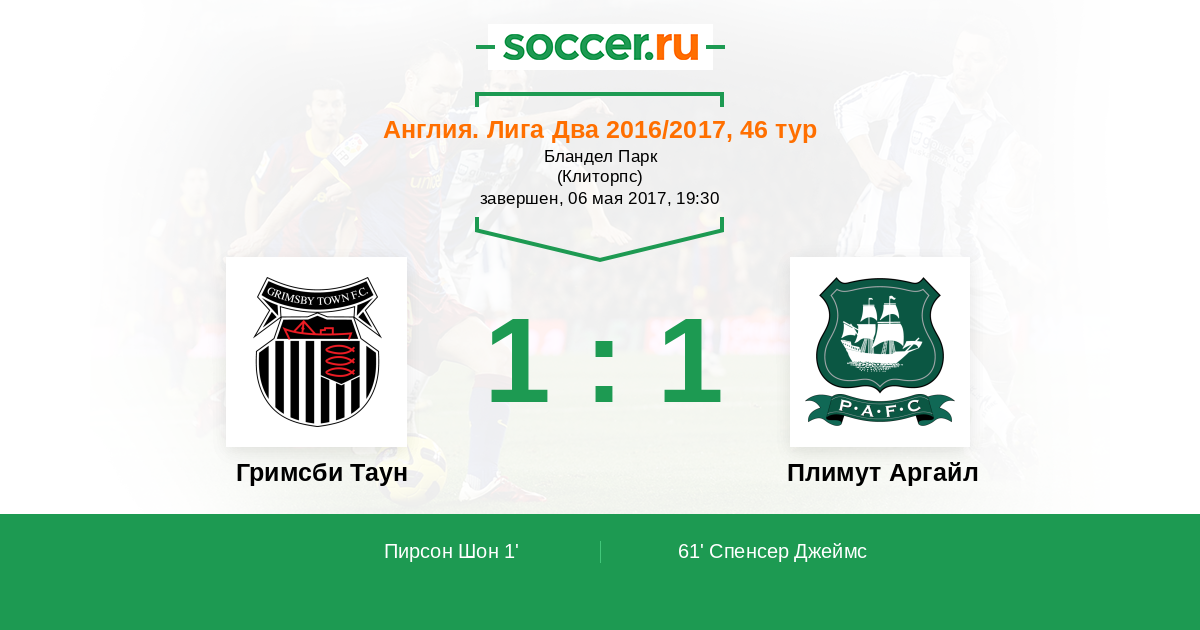 Протокол матча Гримсби Таун против Плимут Аргайл