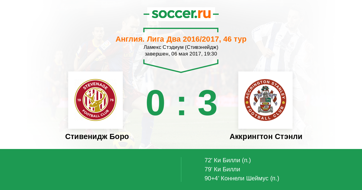Протокол матча Стивенидж Боро против Аккрингтон Стэнли