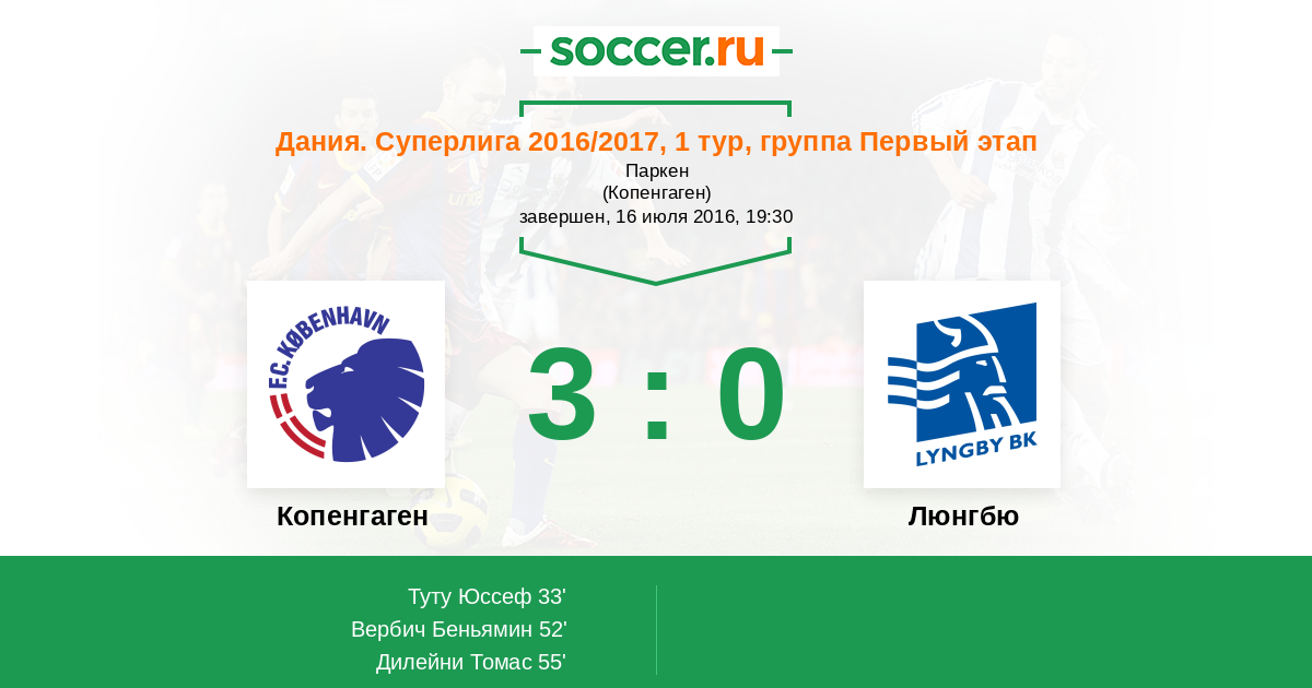 Протокол матча Копенгаген против Люнгбю