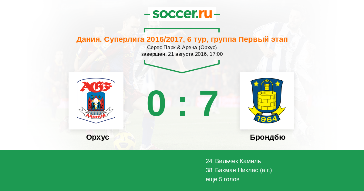 Протокол матча Орхус против Брондбю