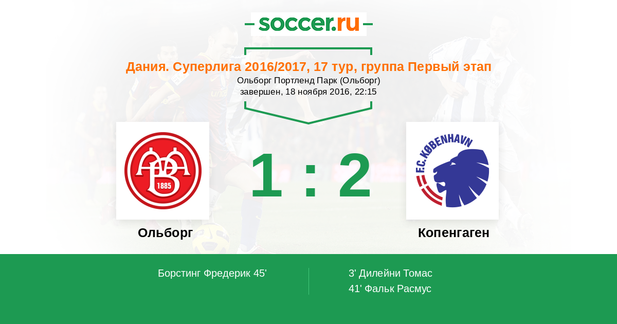 Протокол матча Ольборг против Копенгаген