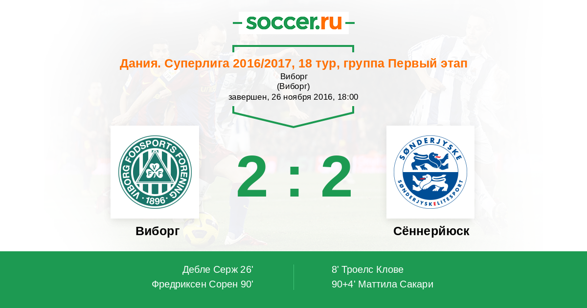 Протокол матча Виборг против Сённерйюск