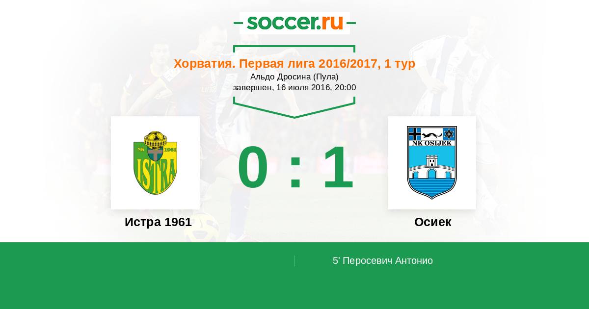 Протокол матча Истра 1961 против Осиек