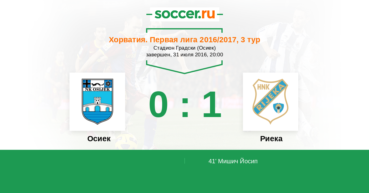 Протокол матча Осиек против Риека