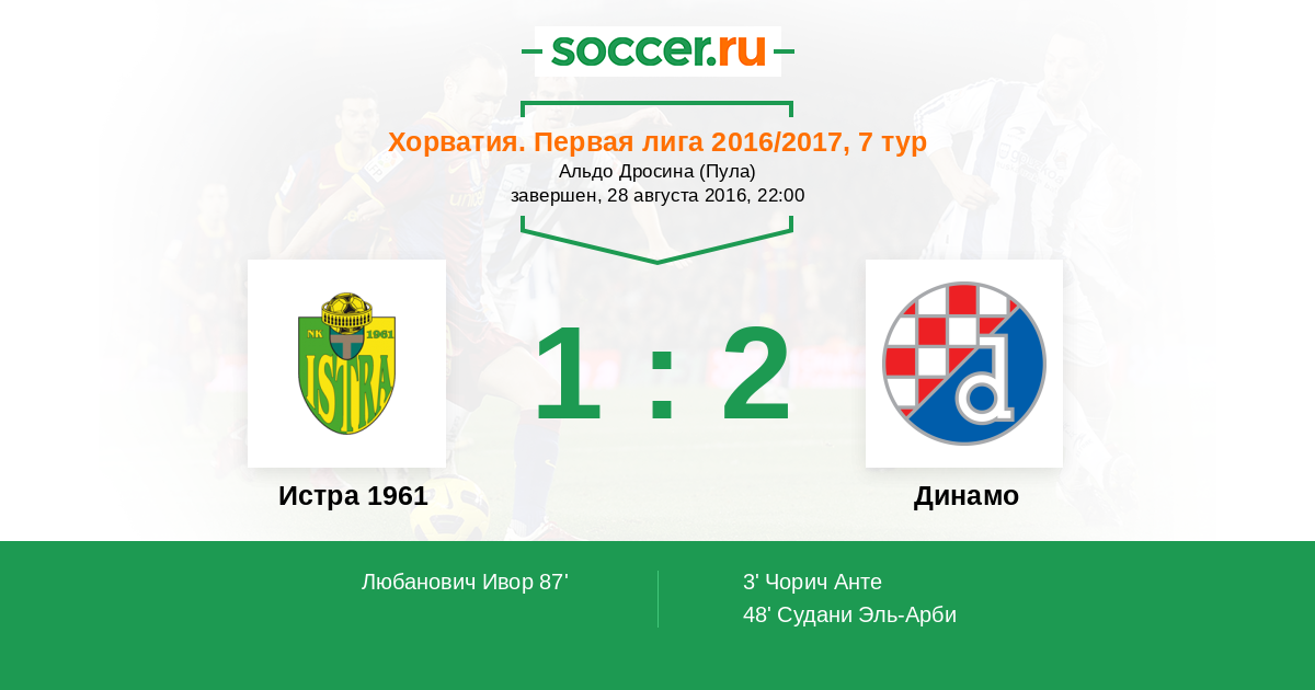 Протокол матча Истра 1961 против Динамо