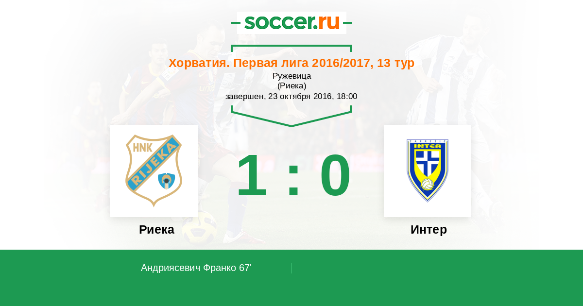Протокол матча Риека против Интер