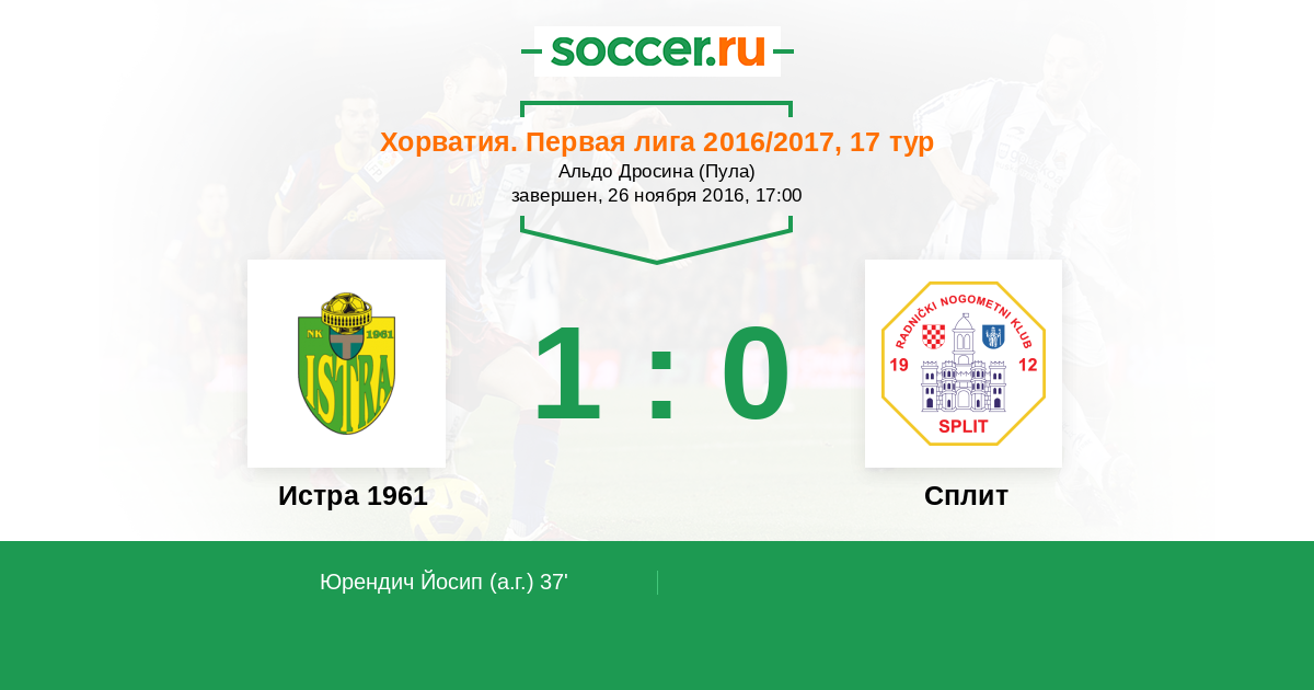 Протокол матча Истра 1961 против Сплит