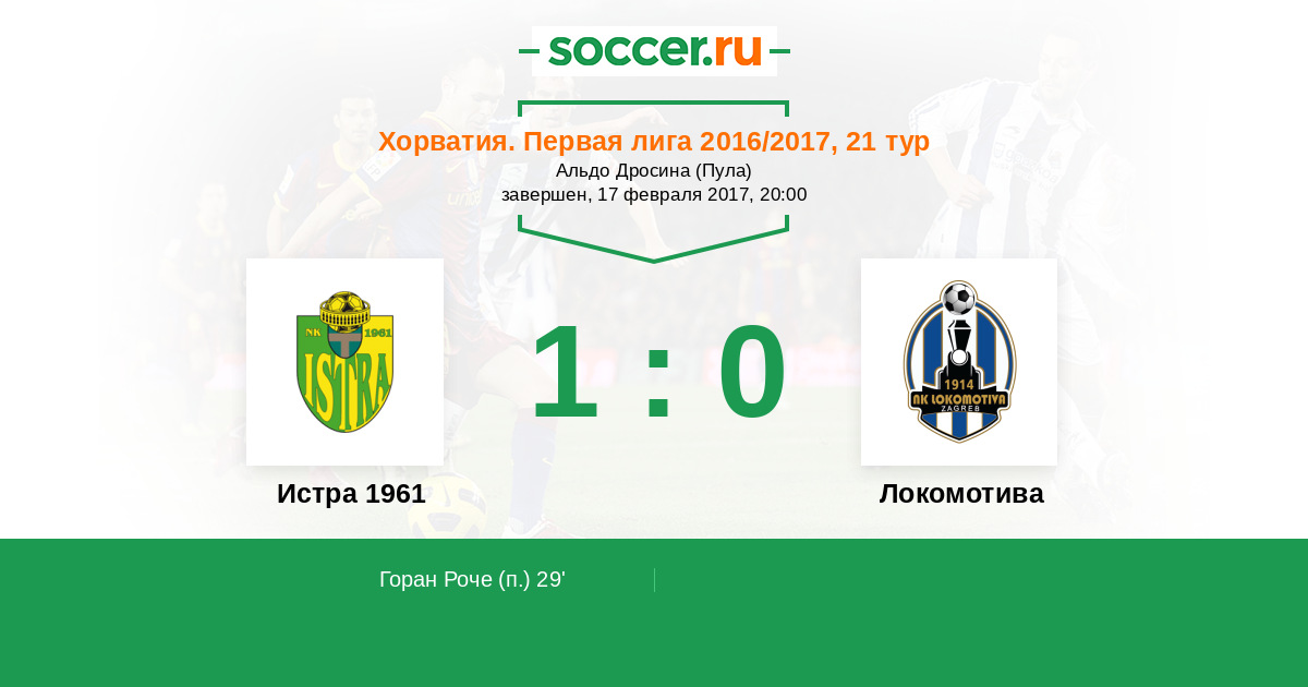 Протокол матча Истра 1961 против Локомотива
