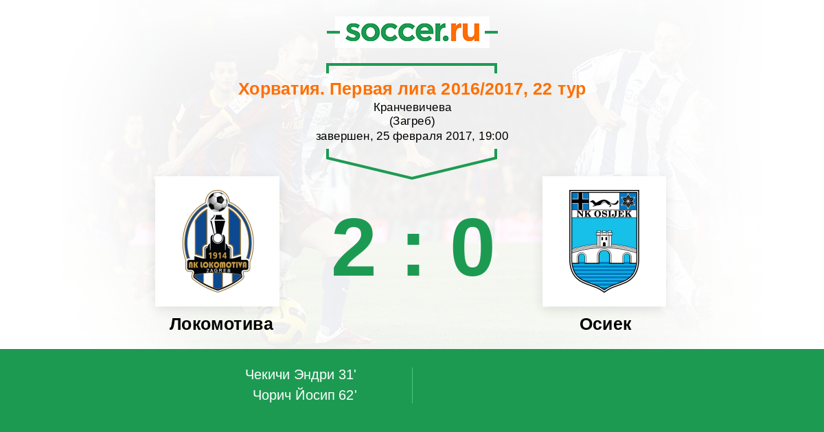 Протокол матча Локомотива против Осиек