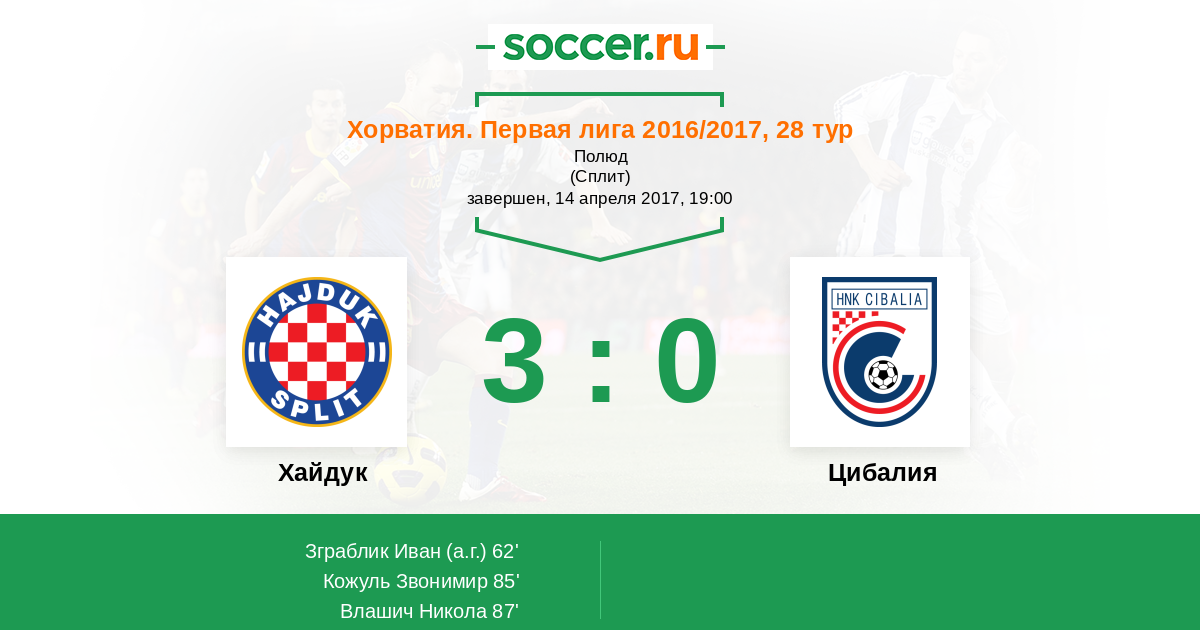 Протокол матча Хайдук против Цибалия
