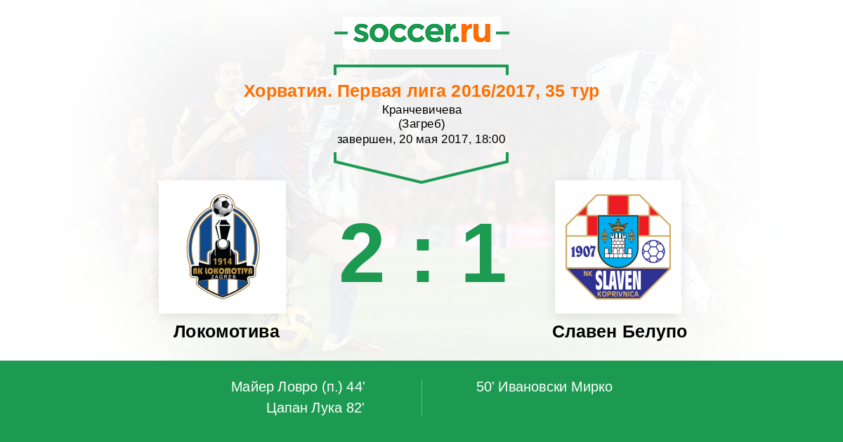 Протокол матча Локомотива против Славен Белупо