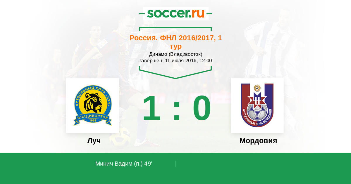 Протокол матча Луч против Мордовия