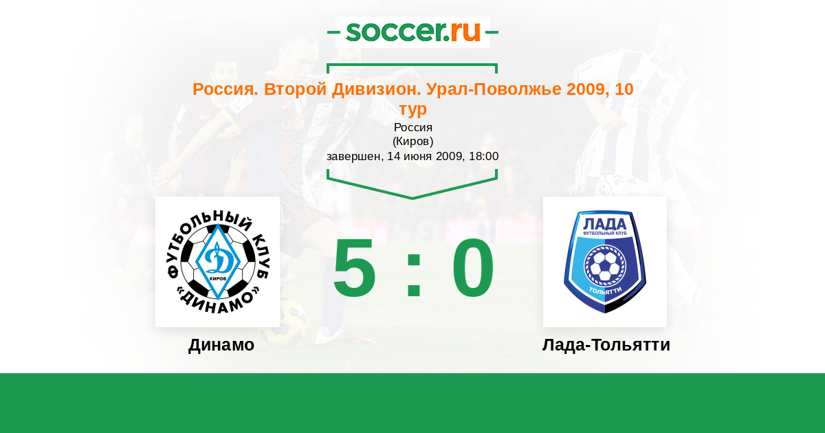 Россия. Вторая лига. Группа 4 22.09.2009 Лада-Тольятти Логотип футбольный клуб Лада-Тольятти 1:0 Логотип футбольный клуб Динамо Киров Динамо Киров