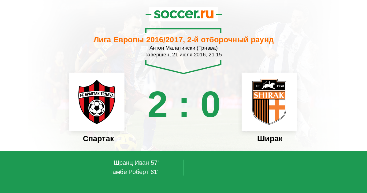 Протокол матча Спартак против Ширак