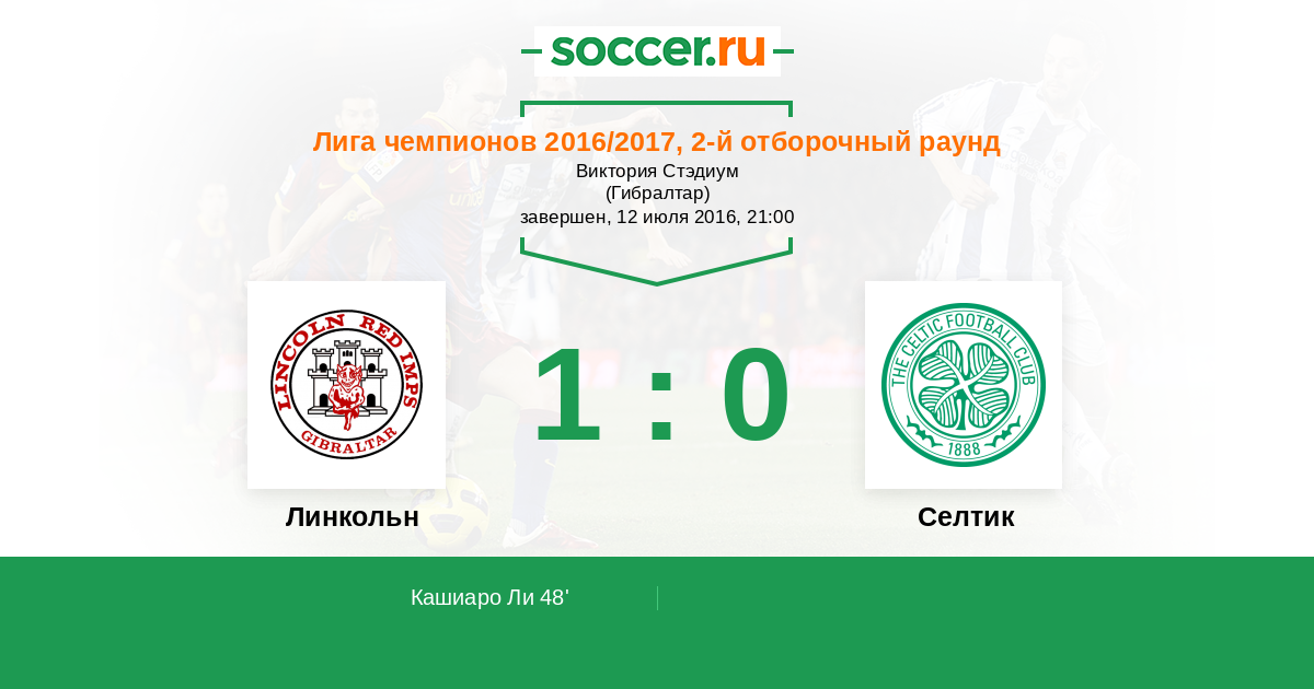 Протокол матча Линкольн против Селтик