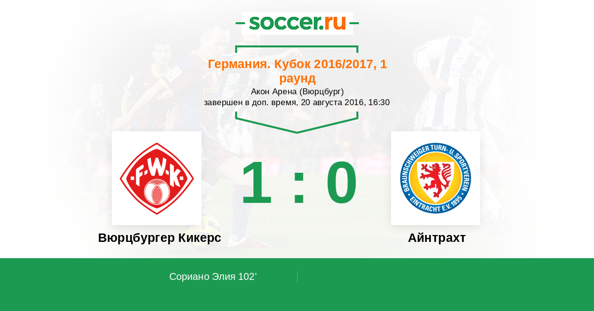 Протокол матча Вюрцбургер Кикерс против Айнтрахт