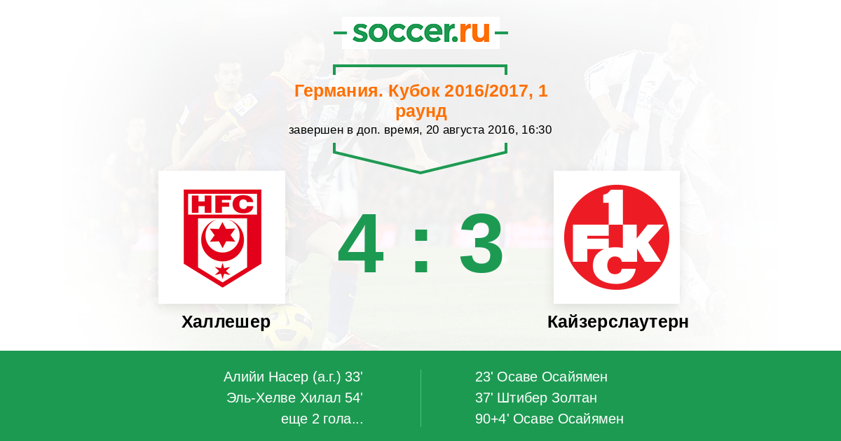 Протокол матча Халлешер против Кайзерслаутерн