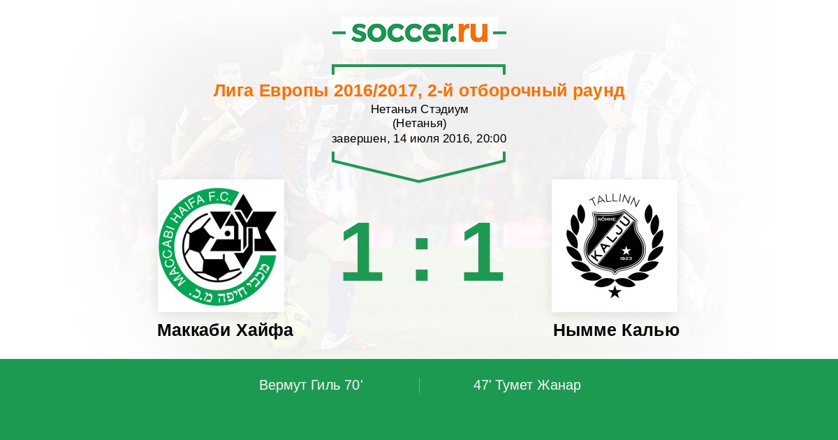 Протокол матча Маккаби Хайфа против Нымме Калью