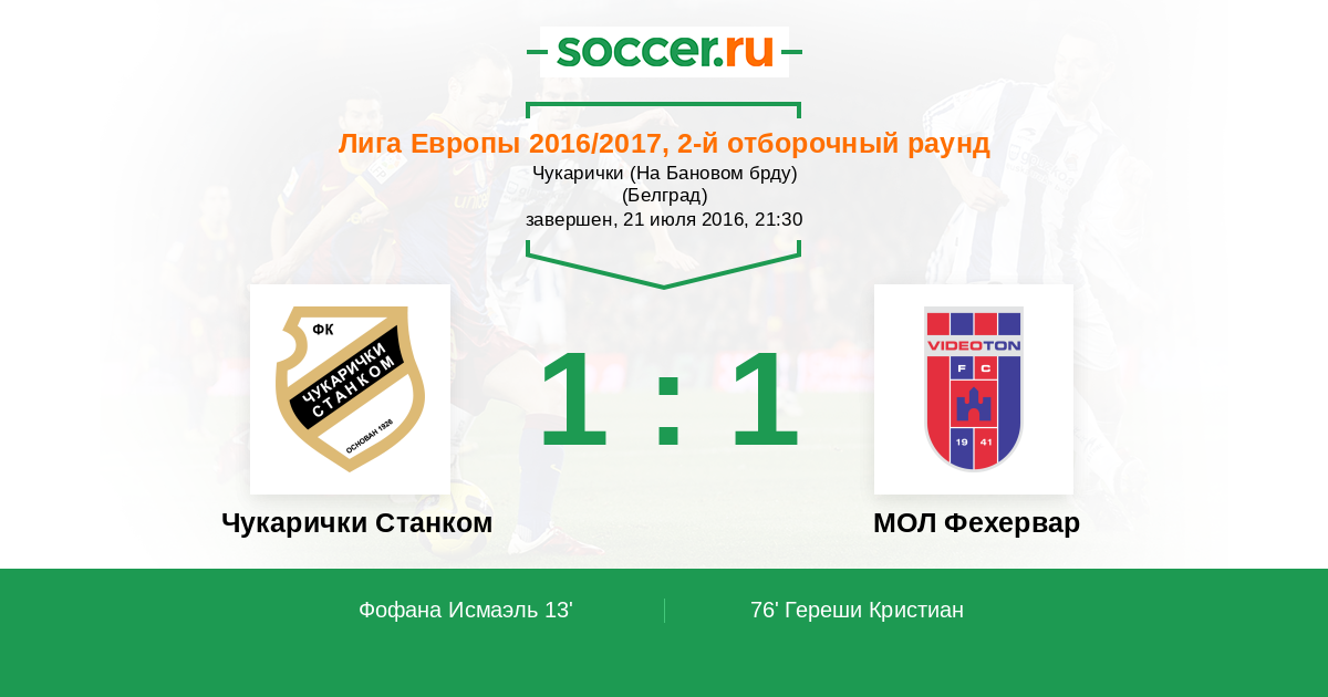 Протокол матча Чукарички Станком против Видеотон