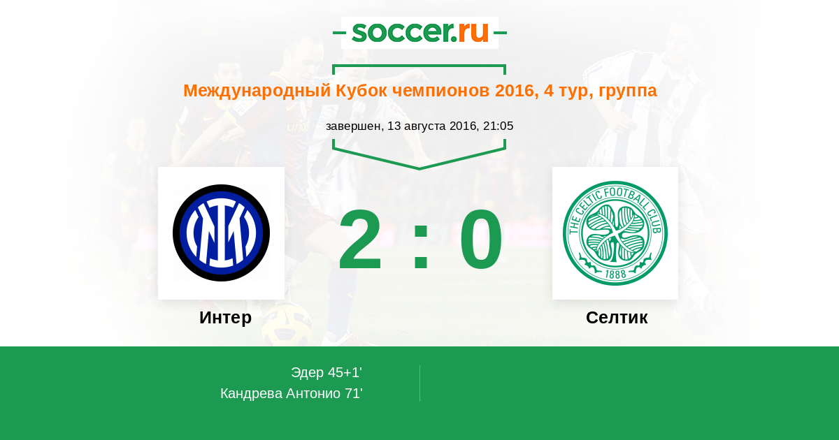 71' (2:0) Кандрева Антонио (87) (Икарди Мауро (9))