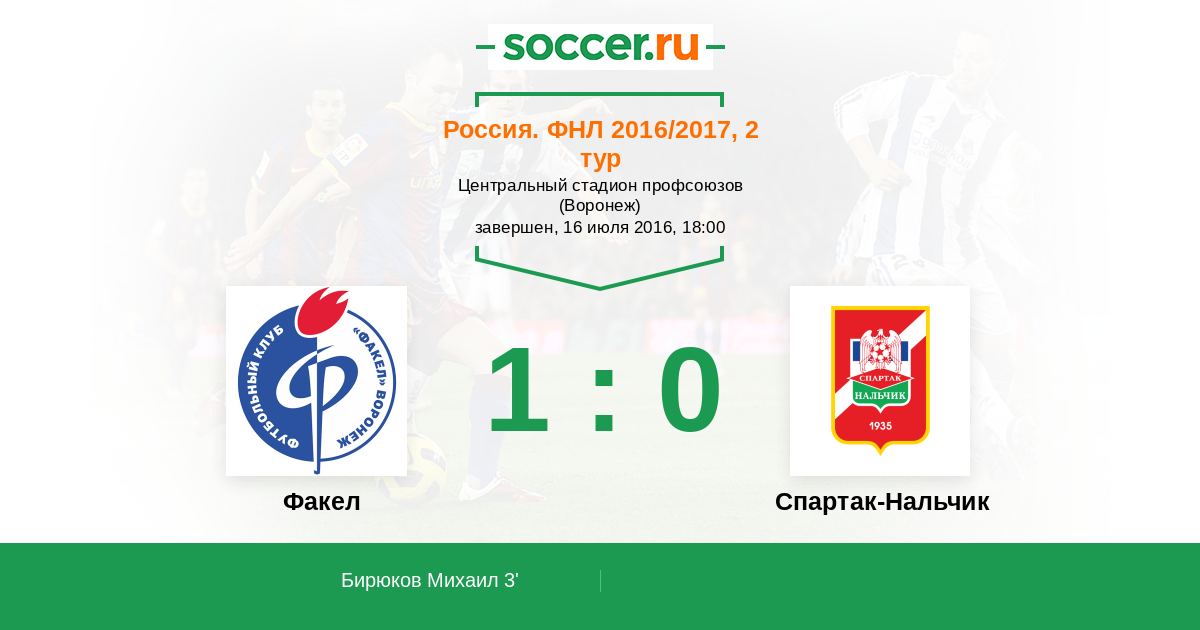 Протокол матча Факел против Спартак-Нальчик