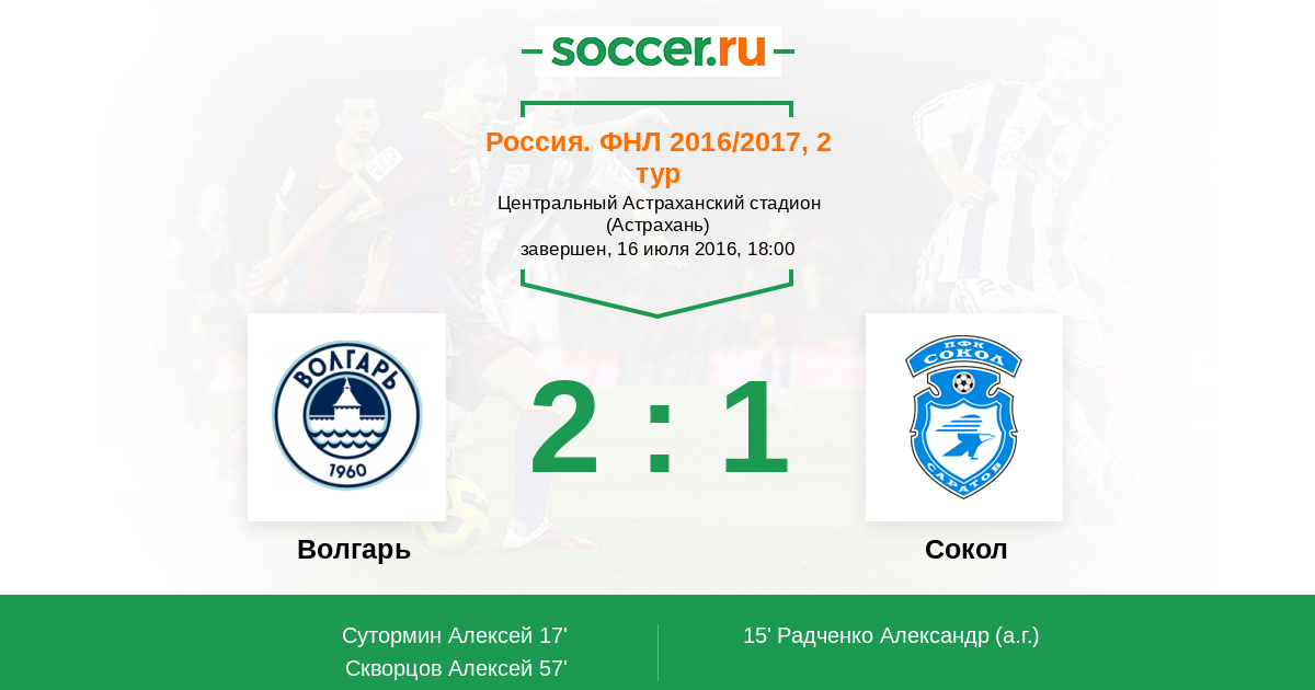 Протокол матча Волгарь против Сокол