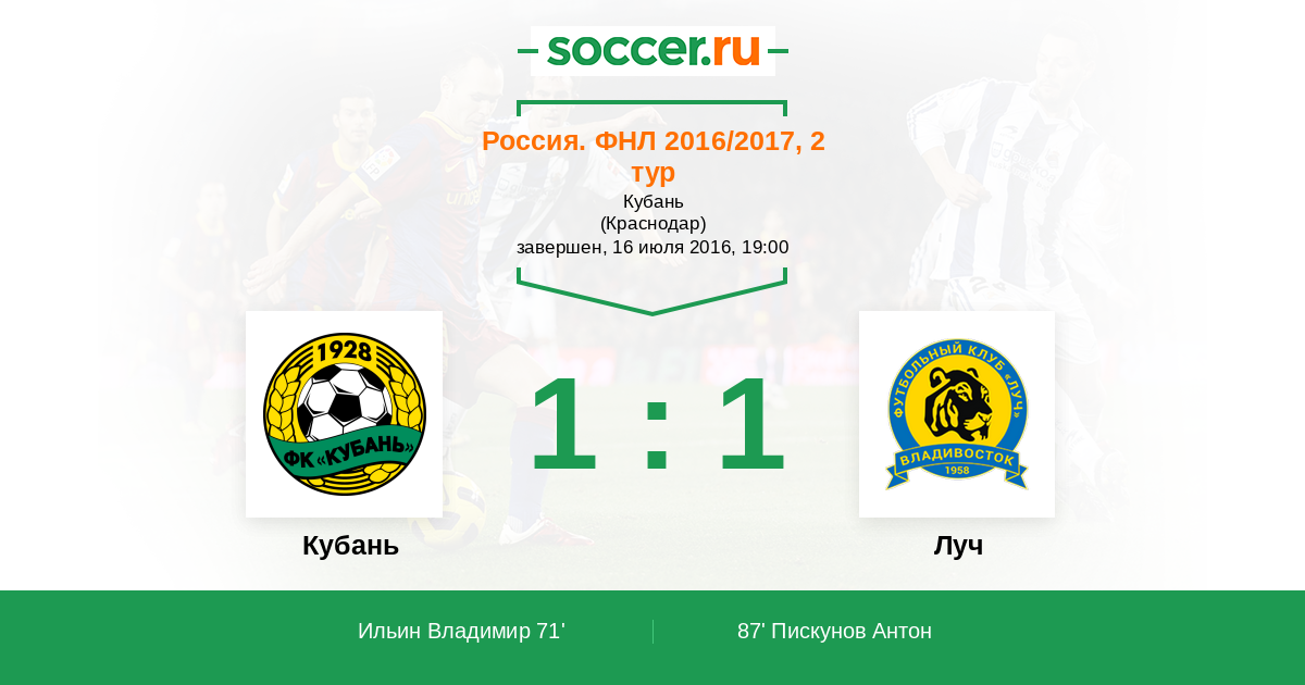 Протокол матча Кубань против Луч