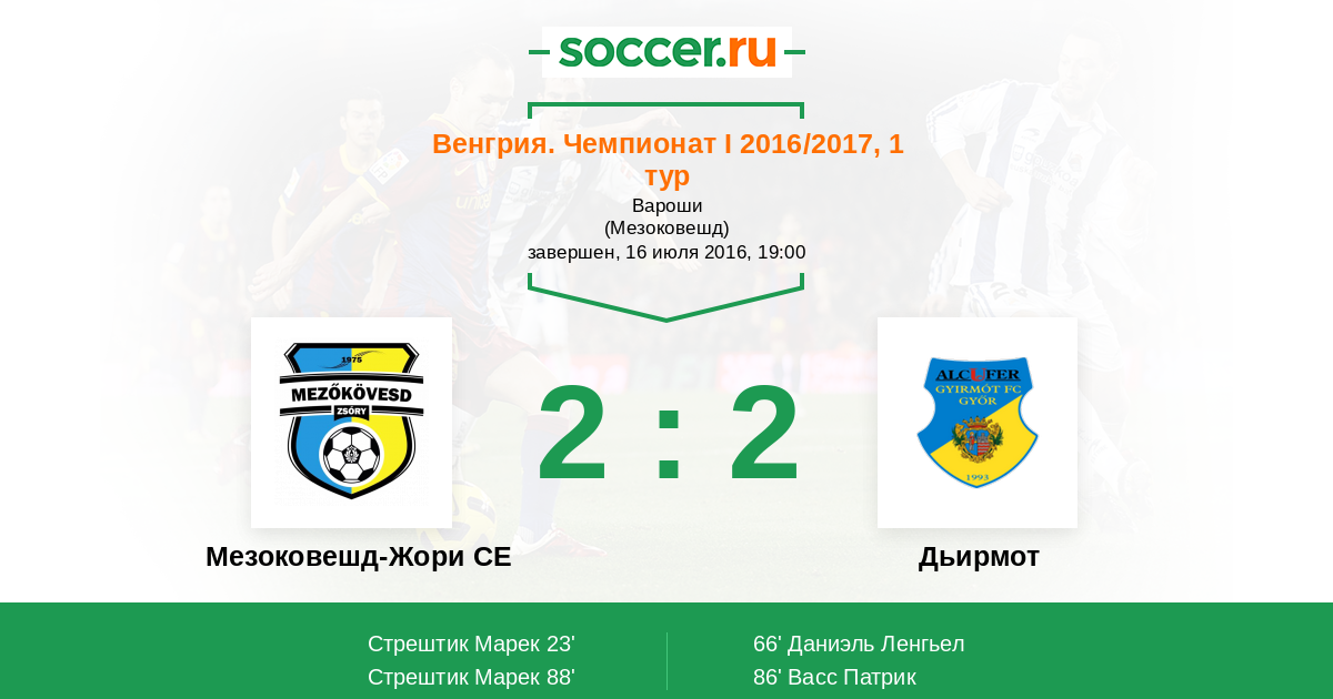 Протокол матча Мезоковешд-Жори СЕ против Дьирмот
