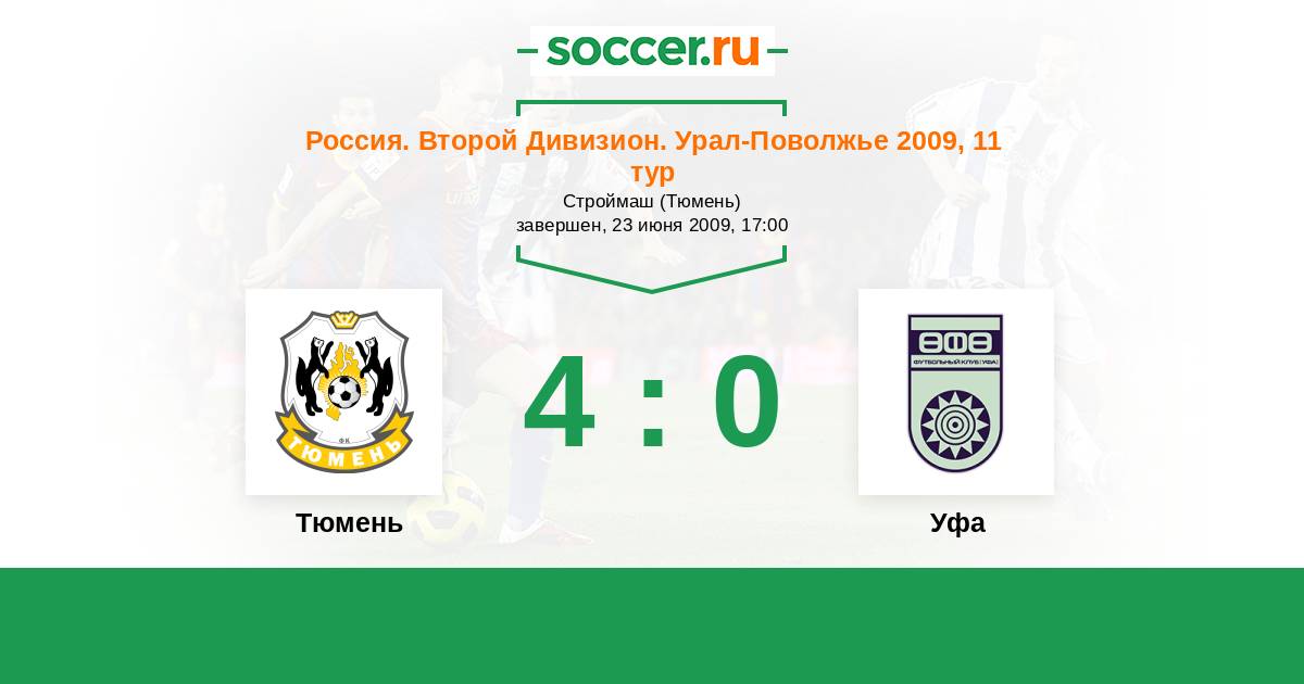 Россия. Вторая лига. Группа 4 01.10.2009 Уфа Логотип футбольный клуб Уфа 1:2 Логотип футбольный клуб Тюмень Тюмень