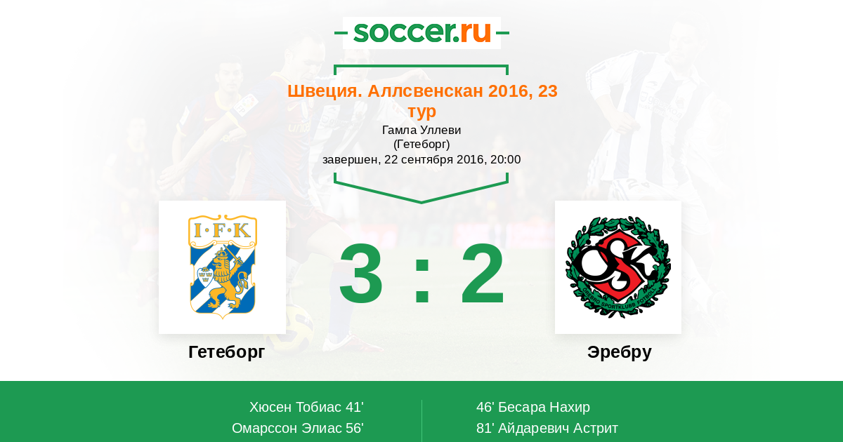 Протокол матча Гетеборг против Эребру