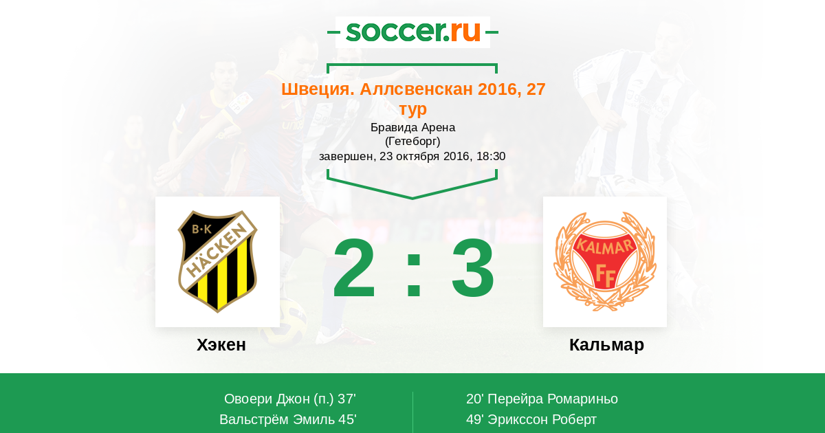 Протокол матча Хэкен против Кальмар