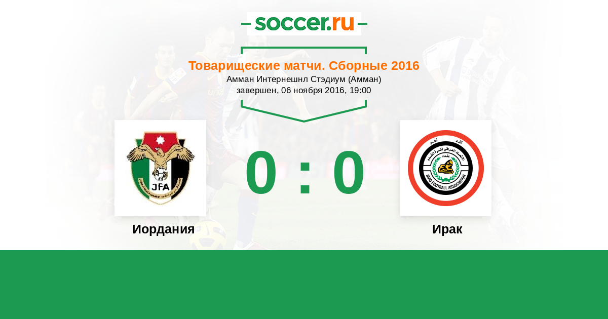 Товарищеские матчи. Сборные 03.10.2015 Иордания Логотип Иордания 3:0 Логотип Ирак Ирак
