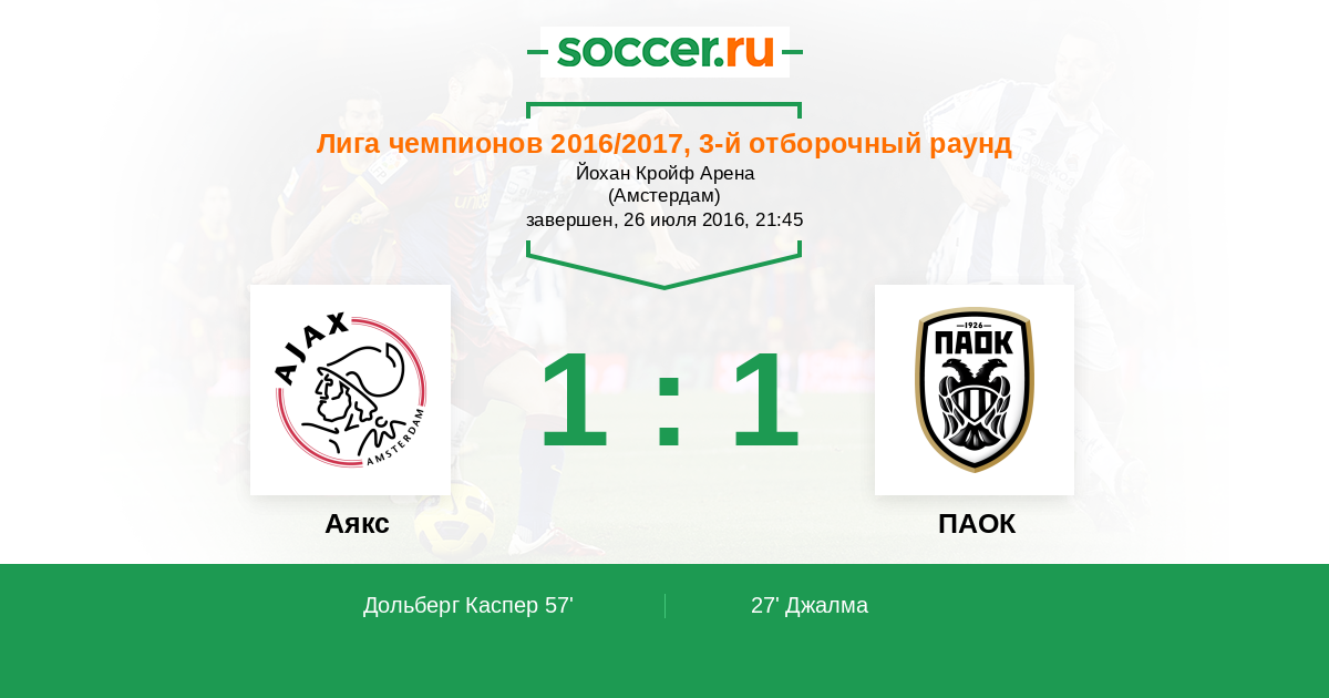 Протокол матча Аякс против ПАОК