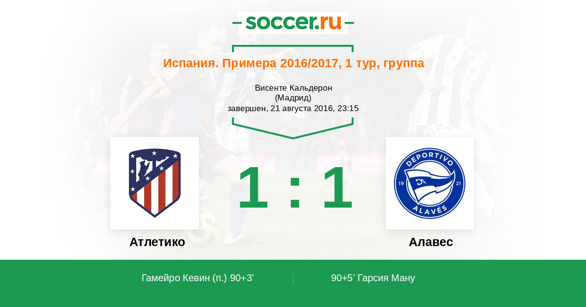 Гол90+5' (1:1) Гарсия Ману (19) (Алексис (4))