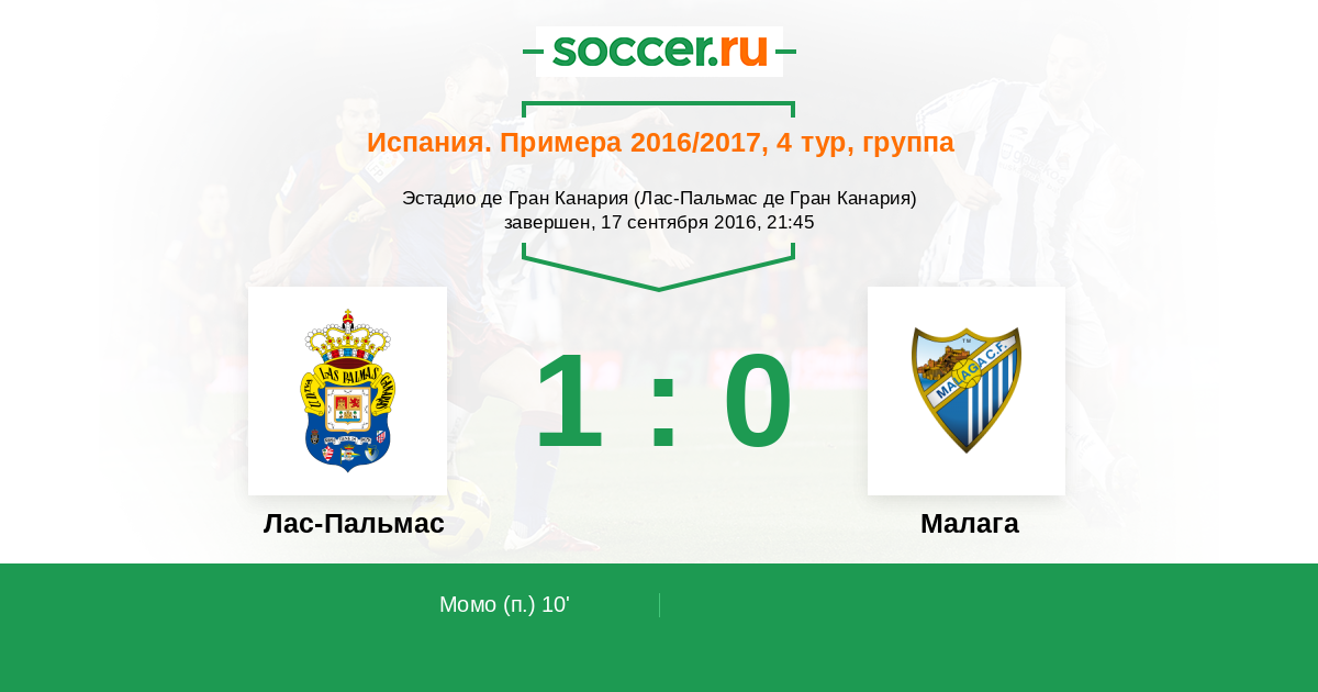 Протокол матча Лас-Пальмас против Малага