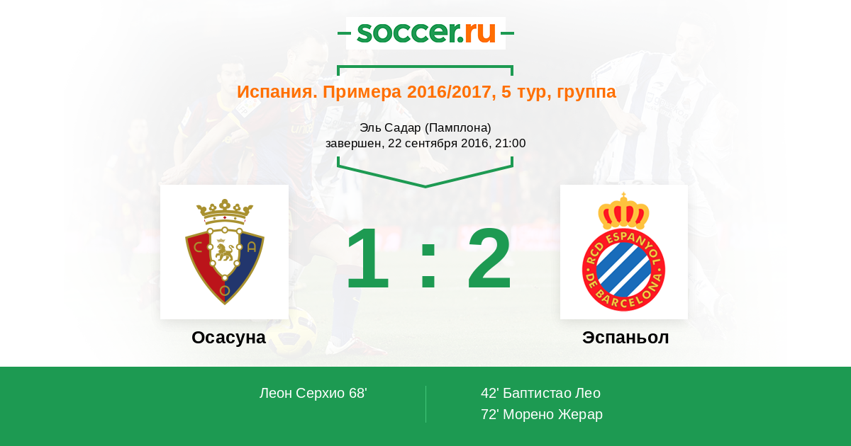 Протокол матча Осасуна против Эспаньол