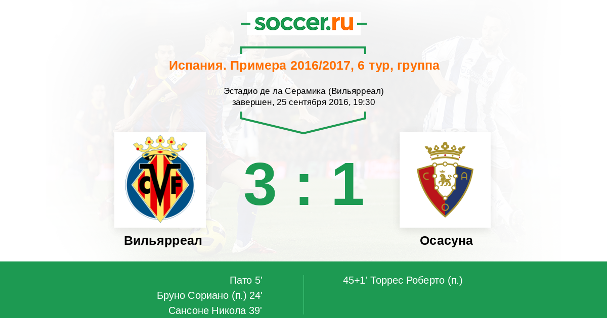 Протокол матча Вильярреал против Осасуна