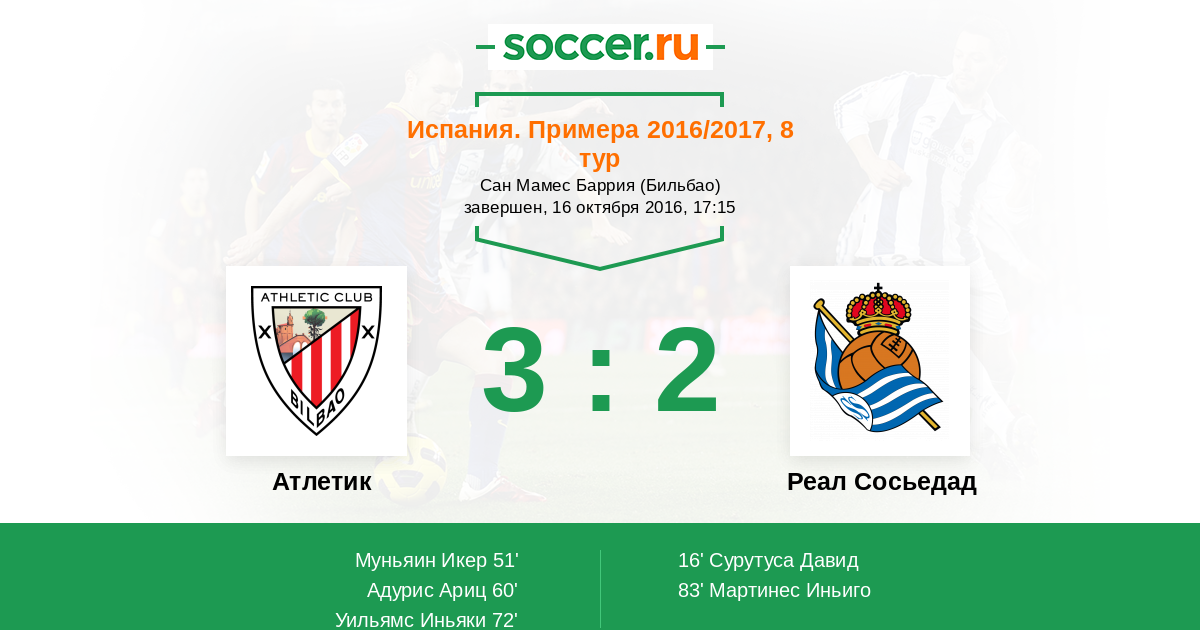 Реал Сосьедад: Рульи - Навас, Берчиче, Мартинес, Мартинес - Сурутуса, Ильярраменди, Вела, Прието, Ойарсабаль - Виллиан Жозе.