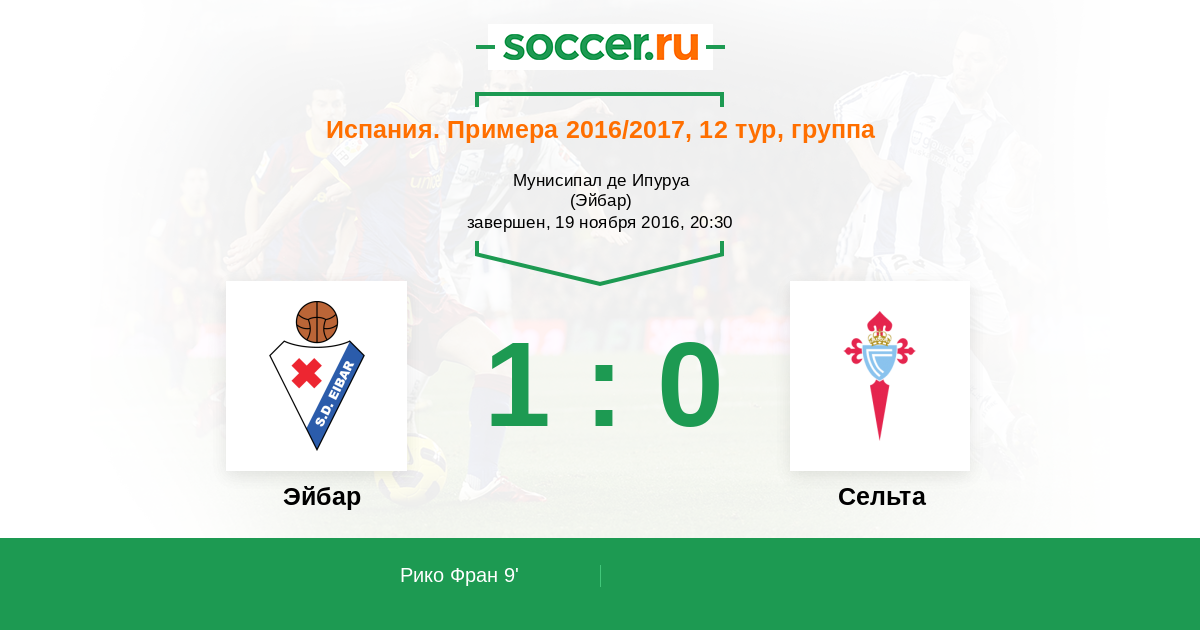 Протокол матча Эйбар против Сельта