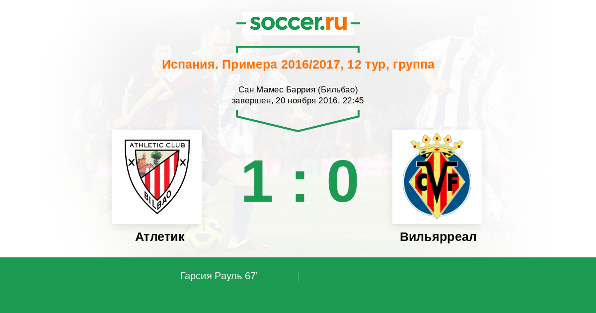 Протокол матча Атлетик против Вильярреал
