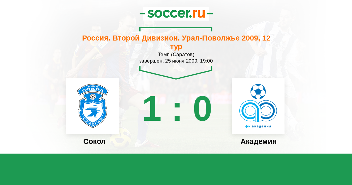 Россия. Вторая лига. Группа 4 04.10.2009 Академия Логотип футбольный клуб Академия (Тольятти) 1:1 Логотип футбольный клуб Сокол (Саратов) Сокол